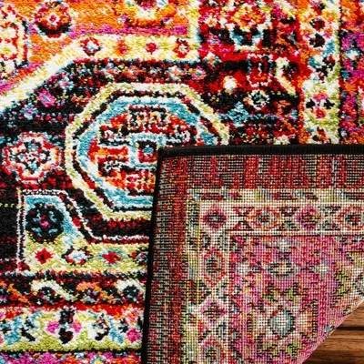 Traditional rug artistry is revived for today’s fashion-forward home decor in the rich styling and vivid colors of Maxine geometric Loomed Area Rugs. Soft underfoot yet durable, Maxine is made with supple synthetic yarns for long lasting beauty and incredible clarity of design. The bright colorful motifs of these rugs are combined with traditional elements to create a marvelous choice that will add decorative drama and heirloom charm to any room. The bright colors will dazzle your guests and bring a airy fresh vibe into the room.