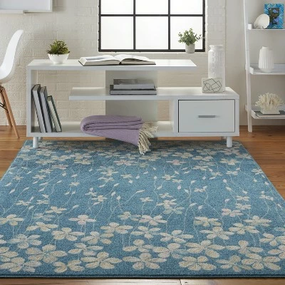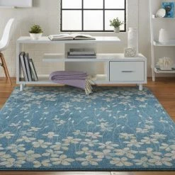 Delicate flowers blow on a gentle breeze in this delightful botanical rug from the Tranquil Collection. Watercolor tones of pink and blue on a navy field create a marvelous sense of softness to bring a boho look to your unique decorating style.