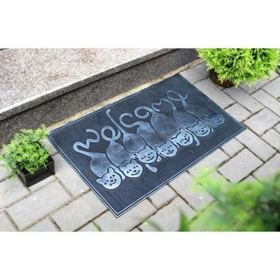 Elegant recycled rubber doormat with an intricate design. Simply rinse or wipe this doormat for easy cleaning. Recycled rubber decorative doormats feature anti-slip protection for slippery areas and doorways. Rubber doormat. To clean simply sweep or shake. Made in India.
