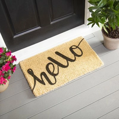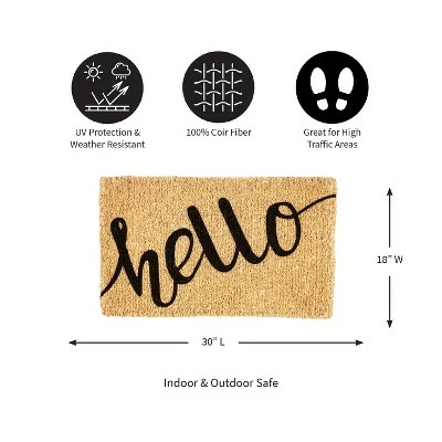 Promo ๐Ÿคฉ Evergreen Hello Debossed Woven Indoor Outdoor Natural Coir Doormat 30 x 18" Multicolored ๐Ÿ””