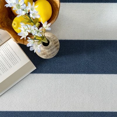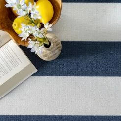 Elevate your space inside or outside your home with this classic striped nautical design. Made from durable synthetic fibers this rug is built to last and adds a touch of luxury wherever it is placed.