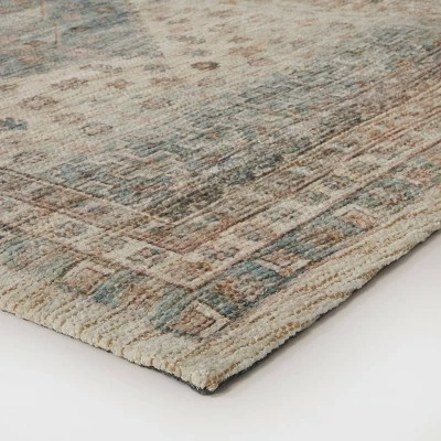 Add traditional flair to your space with this Neutral Light Distressed Diamond Persian Rug from Thresholdโข designed with Studio McGee. This Persian area rug makes a beautiful home accent. It showcases a blue and neutral diamond pattern with a light distressed appearance for subtle visual flair. The woven low-pile construction adds a comfortable touch of texture underfoot, and can be spot cleaned for easy care, while the slip-resistant latex backing keeps the rug securely in place. Place it in your entryway or lobby for a nice decorative look.