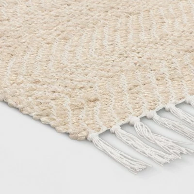 Keep your floor protected while adding natural charm to your home with this Handloom Woven Accent Rug from Threshold™. This accent rug features a woven zigzag pattern in natural and ivory shades, and is decorated with ivory fringes along both the sides to elevate the look while easily matching with a variety of settings. This handmade rug is designed with flat pile for easy maintenance — simply place it along your entryway to create a welcoming look.