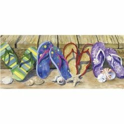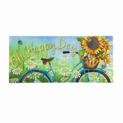 This door mat set is a fabulous way to have fun and easy charm right at your doorstep! All the hallmarks of the season are here – beautiful geraniums, fireflies glowing in the moonlight, fun flip flops in a delightful beach scene , and cheerful sunflowers with a vintage bicycle, surrounded by blossoming daisies. Welcome summer! Welcome spring! And welcome home.