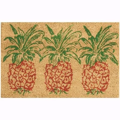 Bring the sunny vibes of a tropical oasis to your front door or entryway with this coastal doormat from the Waverly Greetings collection. This fun interpretation of a pineapple design is printed in deep navy and aqua hues for a fun and funky addition to your contemporary decor. Machine made from sturdy coir, a natural fiber that traps dirt from being tracked into your home.