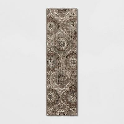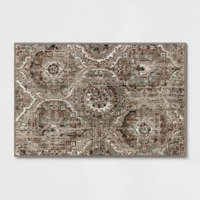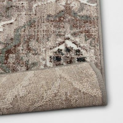 Add beauty and warmth to your flooring with this Bailey Companion Tile Print Accent Rug from Threshold™. This rectangular accent rug provides welcoming style to your indoor space. It showcases a traditional tile pattern in neutral and tan tones for a charming classical look. The latex backing helps prevent the rug from shifting and moving. Cut to a medium pile profile, it easily fits under furniture and can be spot cleaned for easy care.