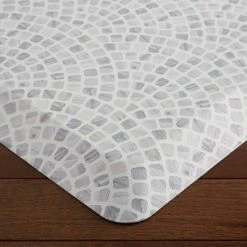 The Emeril Comfort Air anti-fatigue kitchen mat offers an exceptional blend of function, comfort, and style for your decor. The whimsical mosaic tile design adds a modern look to any decor. Constructed of thick, air-infused memory foam with a smooth beveled edge, this anti-fatigue mat is perfect for where you stand the most and helps to relieve stress and aches on your feet, back and joints. The non-skid backing helps the mat to stay in place. This easy-clean mat is stain, oil, and water resistant.