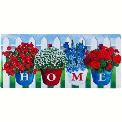 Welcome year-round style to your doorstep with this festive offering. Cute shabby chic bunnies help you welcome spring and Easter, festive hearts celebrate valentine’s Day, lucky shamrocks help wish visitors a happy St. Patricks Day and yer-round or Patriotic style is displayed on the red, white and blue HOME door mat.
