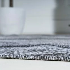 Inspired by timeless Mediterranean patterns, this indoor-outdoor rug adds rich, indigo blues to a kitchen, living room, bedroom or dining room. The deep navy trellis design is an easy maintenance solution for homes with kids and pets. Outdoors, this rug adds classic color and traditional pattern to your patio or porch.
